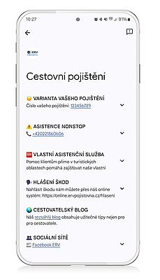 If your phone does not allow you to save a digital travel insurance card to your phone or you simply do not want one, don't worry. The insurance remains the travel contract from the travel agency or the insurance contract if you have arranged the insurance directly from ERGO Cestovní Pojišťovna.